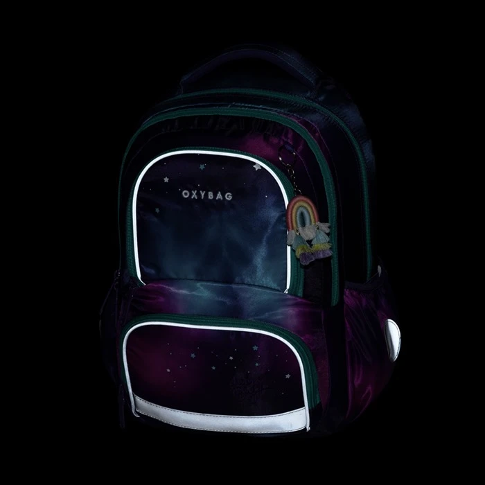 Batoh OXY NEXT je navržen tak, aby poskytoval maximální pohodlí při nošení i dostatek prostoru pro školní potřeby. Díky anatomicky tvarovaným zádům, polstrovaným ramenním popruhům a hrudnímu popruhu dobře sedí na zádech a pomáhá rovnoměrně rozložit váhu.