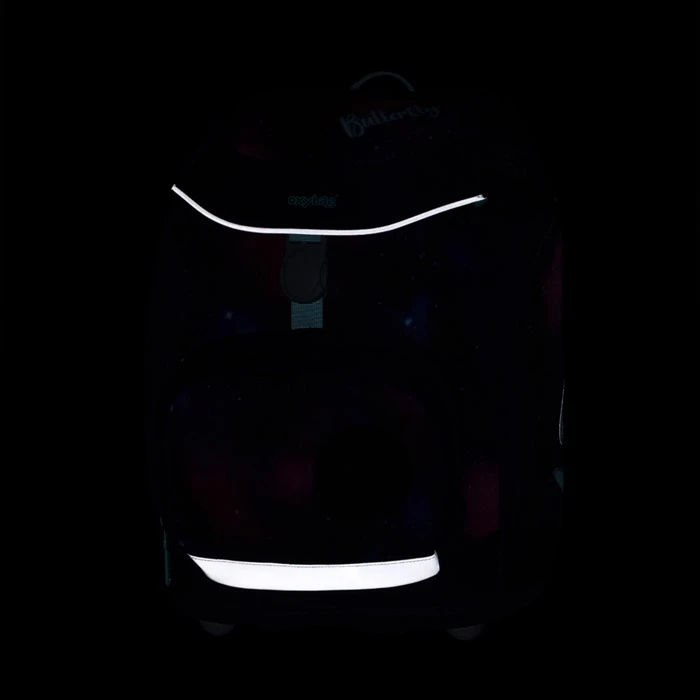 Pevné dno opatřené plastovými nožkami zabraňuje převrhnutí a umožňuje batohu stát samostatně. Vnitřní rozřaďovač pomáhá udržet pořádek, zatímco zapínání hlavní komory na stahovací šňůrku a magnetické zapínání je praktické a snadno ovladatelné jednou rukou. Boční kapsy na zip jsou ideální na lahev s pitím, přední kapsa na svačinu poskytuje další úložný prostor. Nechybí reflexní prvky pro větší bezpečnost dítěte. Díky vyměnitelným plackám na suchý zip si může každý školák přizpůsobit design batohu podle svého vkusu.