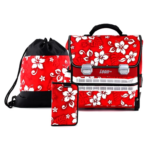 Školní aktovka vyrobena z nepromokavého nylonového materiálu a velmi lehkých a pevných umělohmotných lamel. Disponuje reflexní páskou a nitěmi výrazně zvyšující bezpečnost dětí při snížené viditelnosti včetně stabilních kovových zámků s odrazkami.