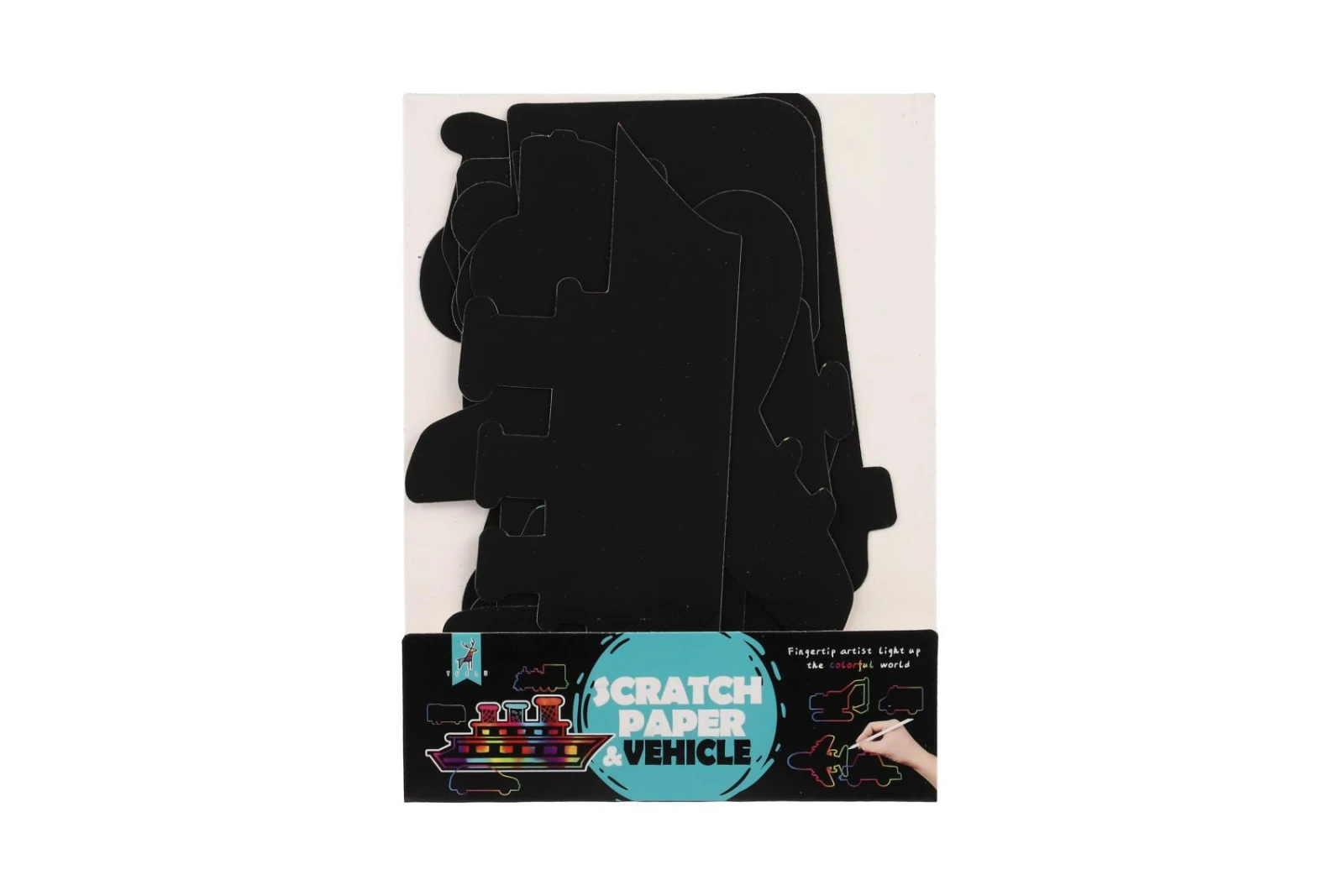 Škrabací obrázek, výřez duhový dopravní prostředky 8 ks