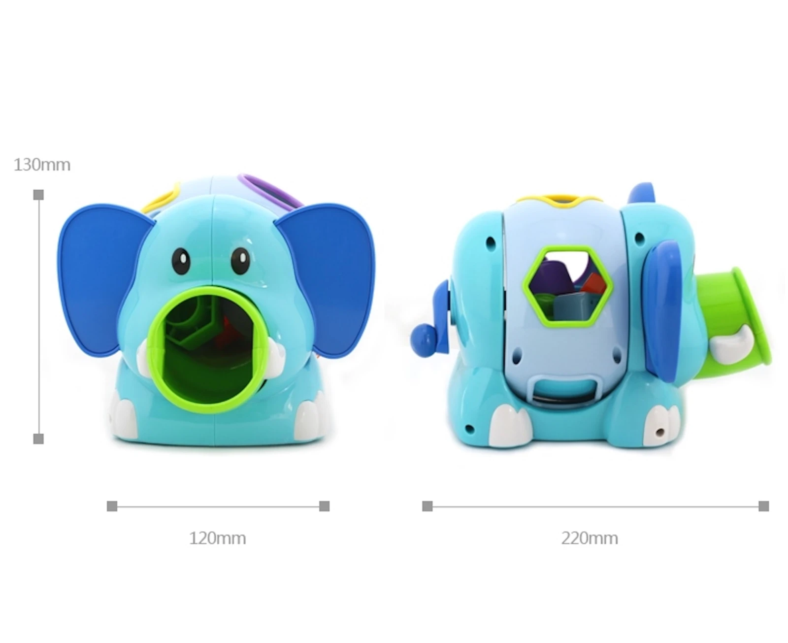 Roztomilý slon s různobarevnými vkládacími tvary. Pomůže vašemu dítěti naučit se poznávat barvy i tvary a rozvíjet jednotlivé smysly a motorické dovednosti.Vhodné pro děti od 12 měsíců.