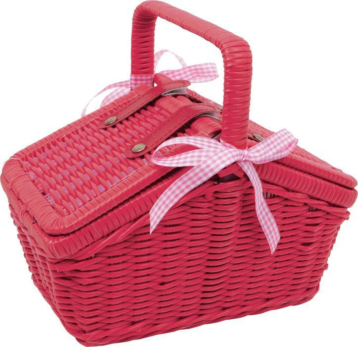 Rozměr: 24x13x21 cm Věk: 3+Materiál: kov, látkaKoš je vyroben z umělého proutí.