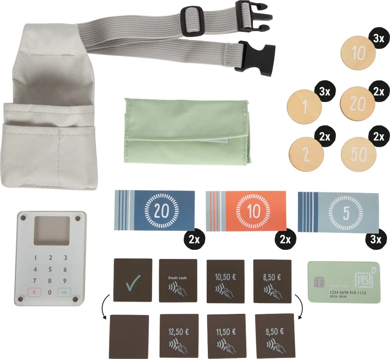 Rozmanité ingredience na pizzu jako je cibule, houby, paprika, rajčata, klobása, sýr a rajčatová omáčka, vyrobené z plsti, umožňují mnoho nápaditých pizzových kreací. Plátky pizzy z masivního dřeva jsou spojeny suchým zipem a lze je snadno oddělit pomocí krájecího kolečka. Vrcholem autentického herního zážitku je kapsa na opasek, která nabízí prostor pro peněženku číšníka, včetně hracích peněz a moderní čtečku karet. Součástí je také krabice na pizzu.