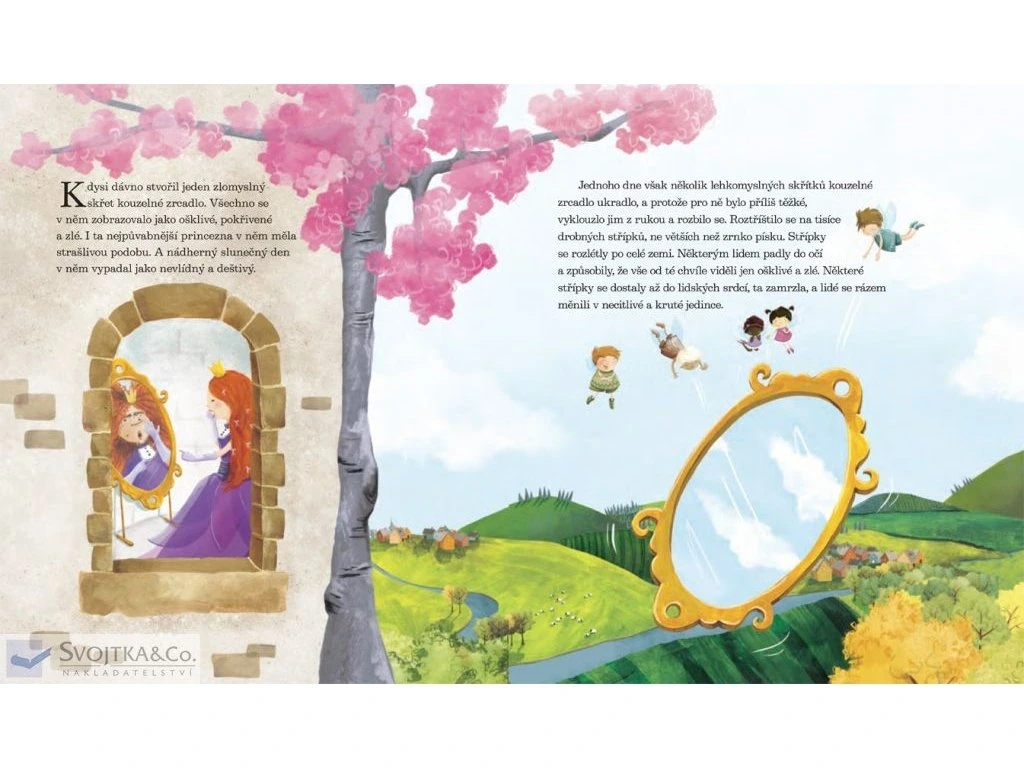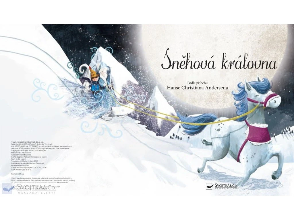 Kdysi dávno stvořil jeden zlý skřet kouzelné zrcadlo. Všechno se v něm zobrazovalo ošklivé, pokřivené a zlé. Jednoho dne několik lehkomyslných skřítků kouzelné zrcadlo ukradlo, vyklouzlo jim a roztříštilo se na tisíc střípků… Jak tato pohádka pokračovala a kdo byla Sněhová královna, se dozvíte v této knížce, která obsahuje jednu z nejkrásnějších a nejznámějších pohádek slavného spisovatele Hanse Christiana Andersena. Pohodlně se tedy posaďte a pusťte se se svými dětmi do prohlížení krásných ilustrací a čtení napínavého příběhu o Sněhové královně!