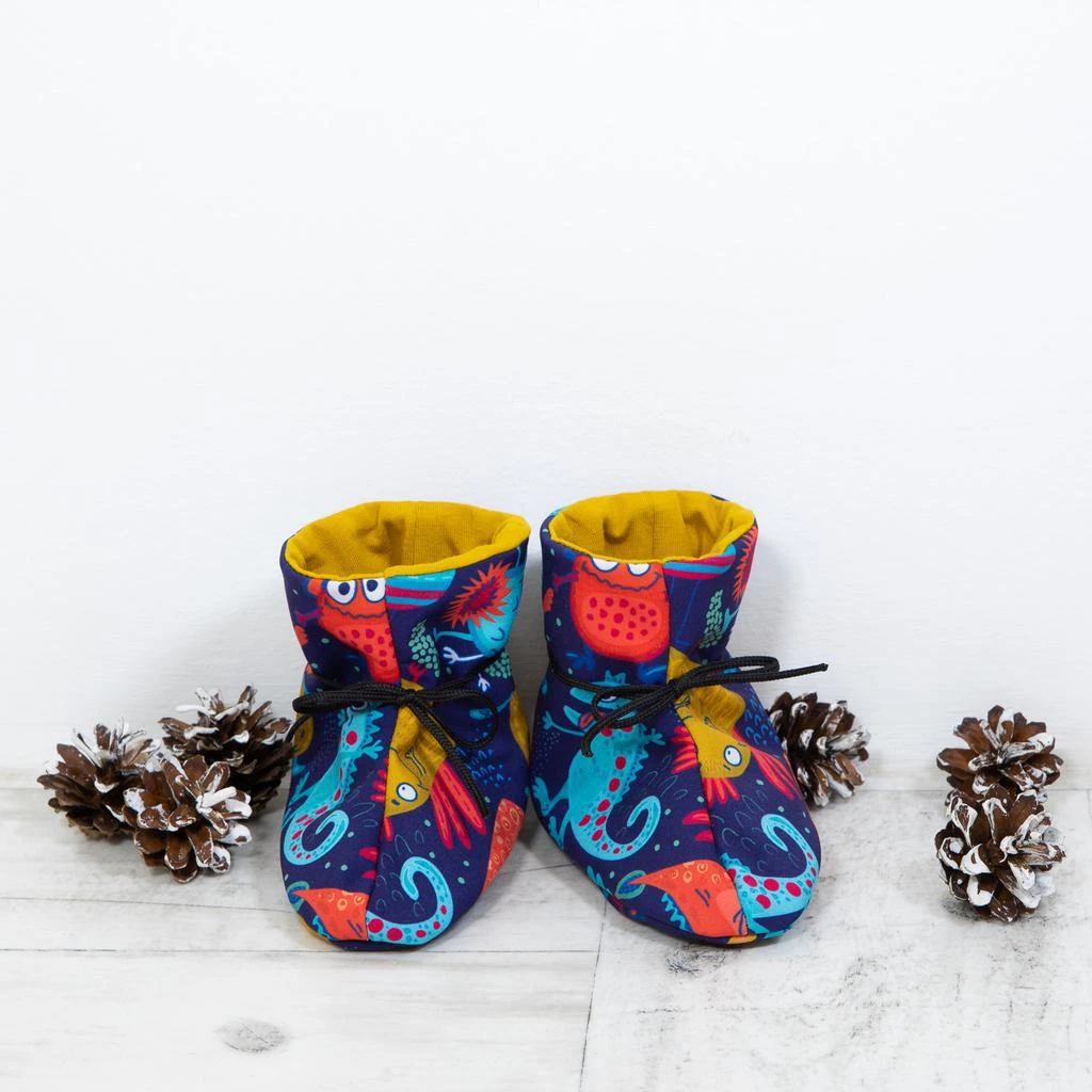 Softshellové botičky podšité BIO bavlnou s certifikací GOTS. Okolo nožičky se botička zavazuje šňůrkou na mašličku, díky tomu se přizpůsobí každé nožičce a nikam nepadá.