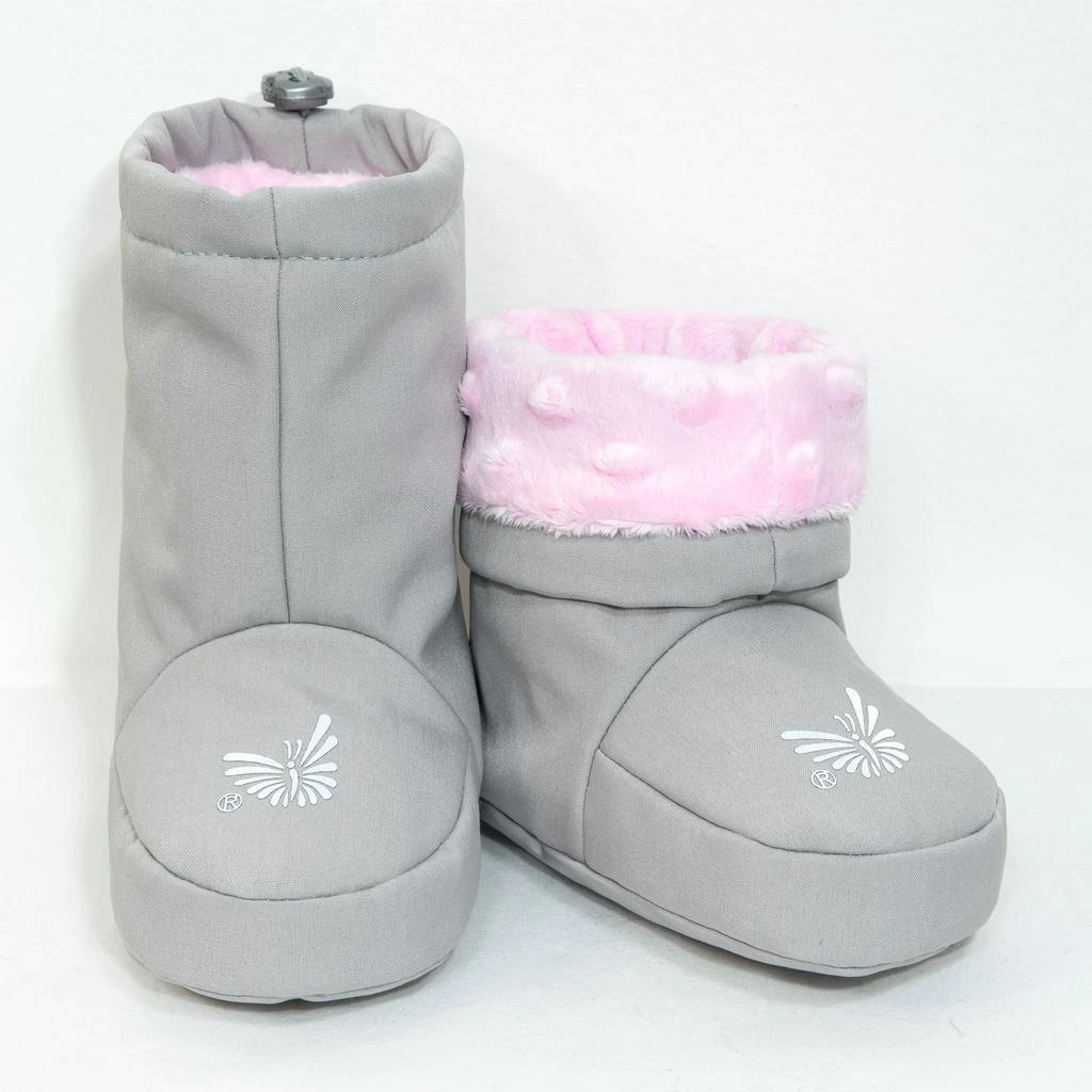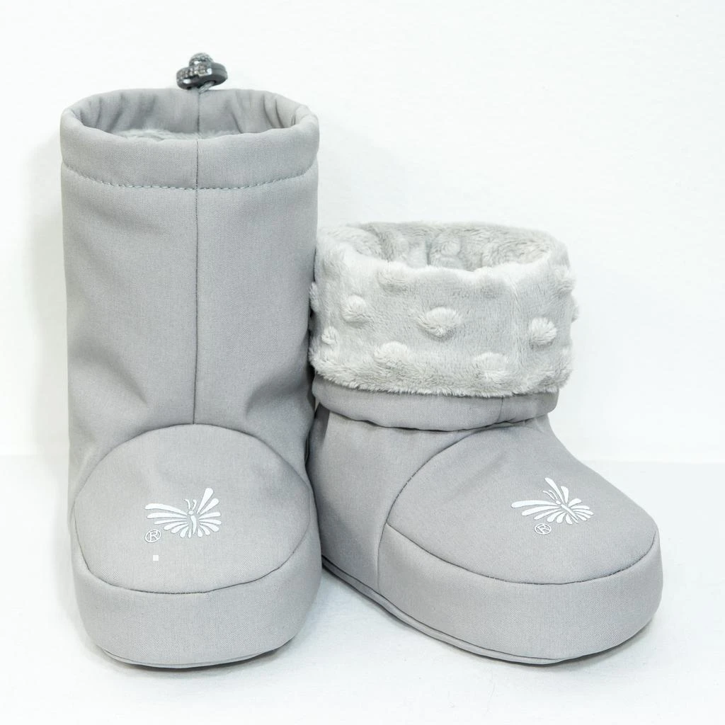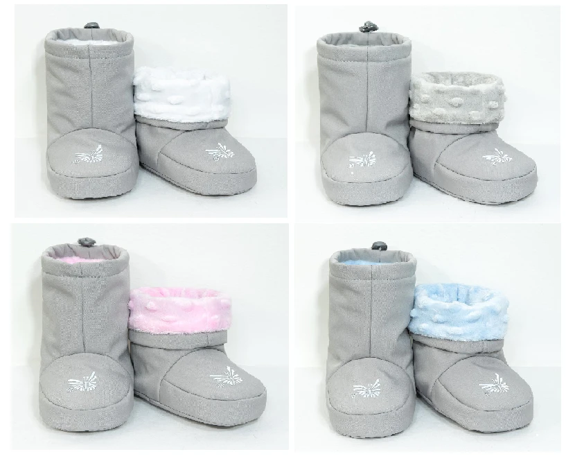 Capáčky Nora jsou dostatečně široké pro volný pohyb prstů. To je pohodlný střih "barefoot". Capáček je velmi teplý, vhodný na zimu a nebo na "stále studené" nožičky do nosítka, krosny, šátku nebo kočárku. Dětské capáčky jsou podšité příjemným a teplým chlupem Minky, okolo nožičky se botička pohodlně a rychle stahuje šňůrkou dle vlastní potřeby s brzdičkou, díky tomu dobře drží na nožičce, nepadají a hlavně se velmi dobře navlékají. Vrchní lem je vyrolovatelný až nahoru čímž se capáček zvýší z 9 na 13 až 15 cm podle velikosti capáčku.
