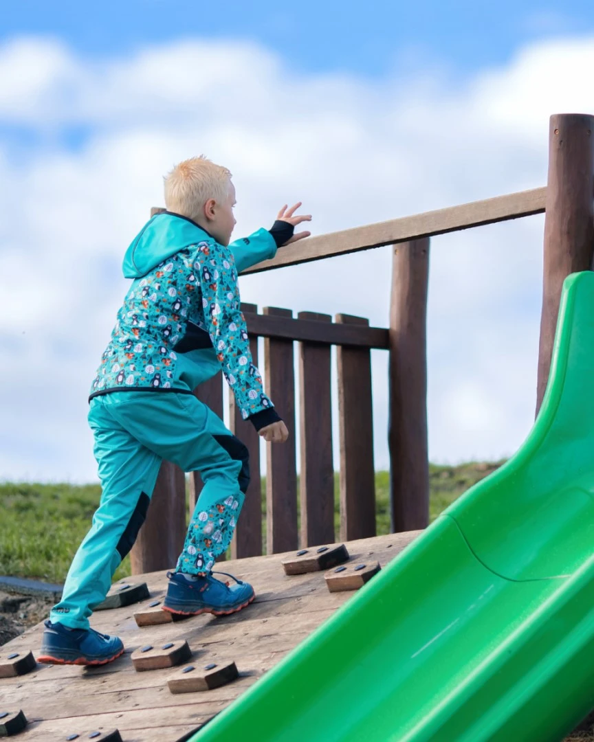 Softshellové kalhoty dětské Medvědi tyrkysové Wamu