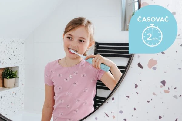 Sonická technologie je ideální volbou pro šetrnou péči o dětské zuby. Jemné vibrace s frekvencí 34 000 kmitů za minutu odstraňují plak a nečistoty, aniž by dráždily citlivé dásně nebo poškozovaly sklovinu. Sonické kmity napomáhají správnému čištění i v těžko dostupných místech a podporují zdravý vývoj dětského chrupu. Čištění je nejen důkladné, ale i příjemné, a pomáhá dětem vytvořit si zdravé návyky už od raného věku.
