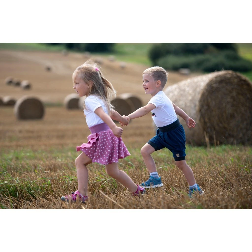 Materiál je vhodný i pro děti s problematickou pokožkou, ať už se jedná o alergiky, či děti s atopickým ekzémem. V pase je široký náplet, který lze dle potřeby ohrnout. Díky nápletu šortky nikde neodstávají a jsou komfortní na nošení. Harémky mají volný střih v sedu, který o to více podpoří pohodlnost.