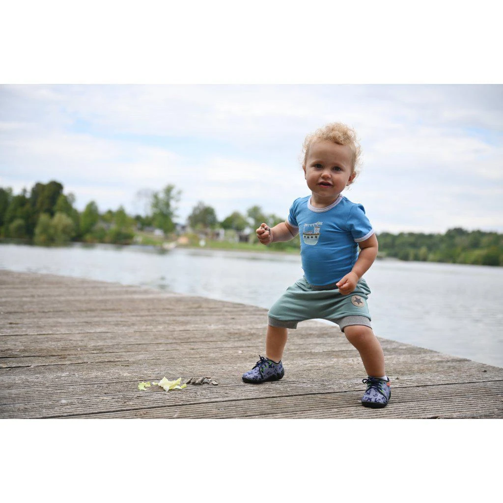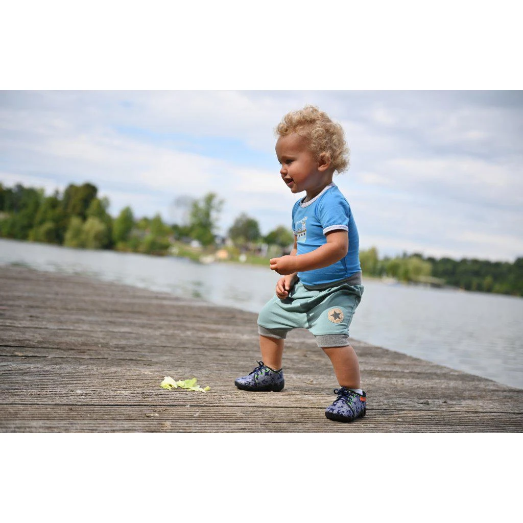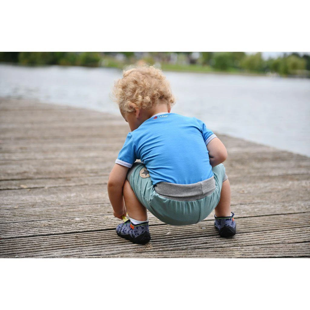 Díky nápletu šortky nikde neodstávají a jsou komfortní na nošení. Harémky mají volný střih v sedu, který o to více podpoří pohodlnost. Ohrnutím nebo spuštěním nápletu v pase můžete regulovat délku šortek, když dítě povyroste. Tudíž vám vydrží více velikostí. Reflexní logo na nohavici podpoří viditelnost v přítmí.