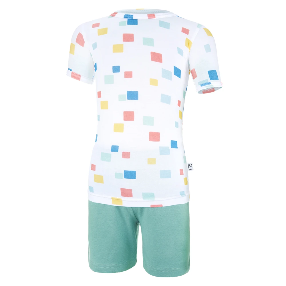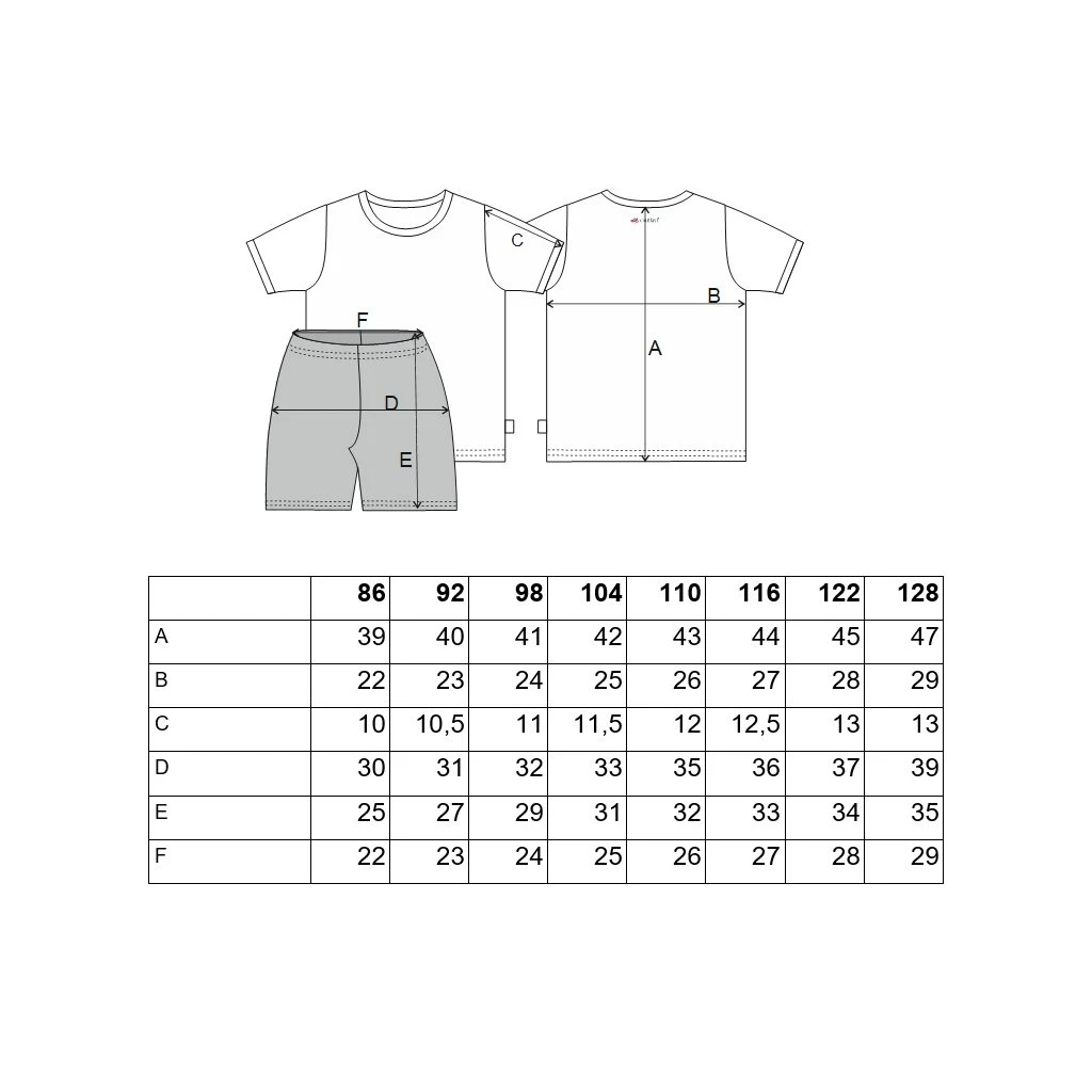 Tričko z kvalitního bavlněného úpletu je univerzální součástí dětského šatníku. V kombinaci s kraťasy tvoří ideální oblečení do teplého počasí. Kraťásky mají pohodlný elastický pas, který dobře drží na místě, neškrtí a přizpůsobí se dětskému tělíčku.