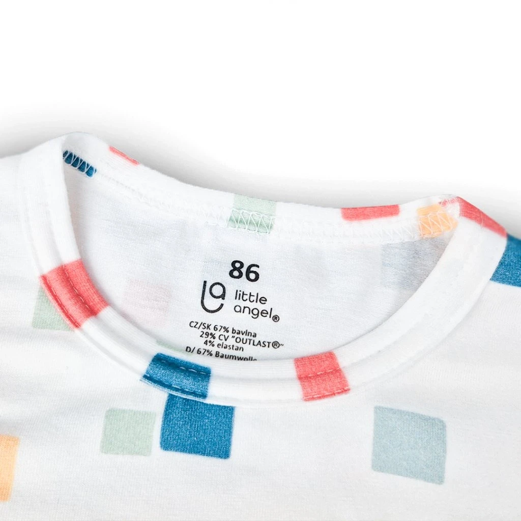 Díky pružnému materiálu souprava perfektně sedí, nevytahá se a přizpůsobí se více velikostem, takže dítěti vydrží delší dobu. Nažehlené etikety navíc zajistí, že žádné cedulky nebudou dítě tlačit ani škrábat.