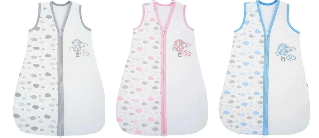 - vzor potisku: mráčky v barvě šedé, modré nebo růžové