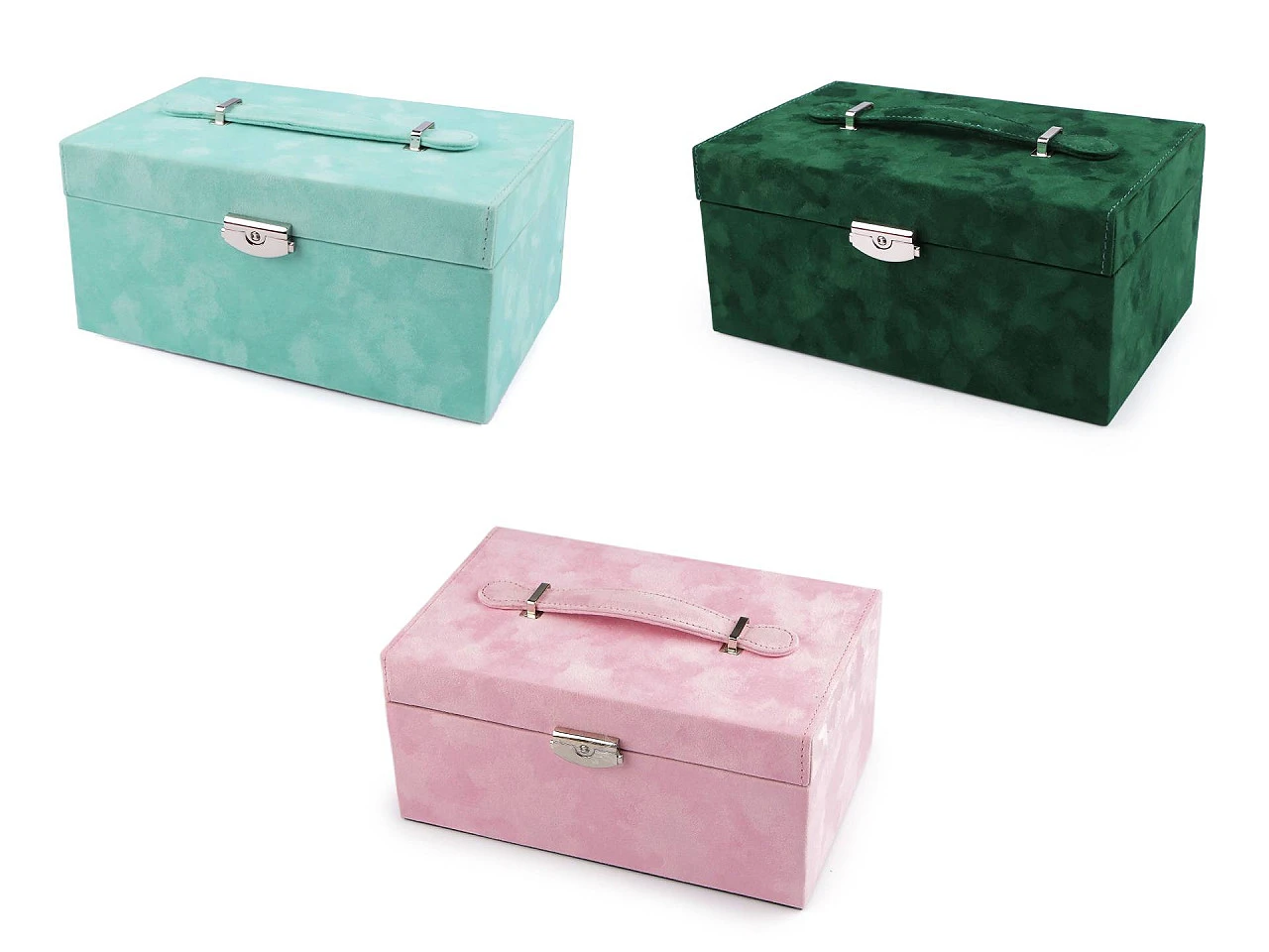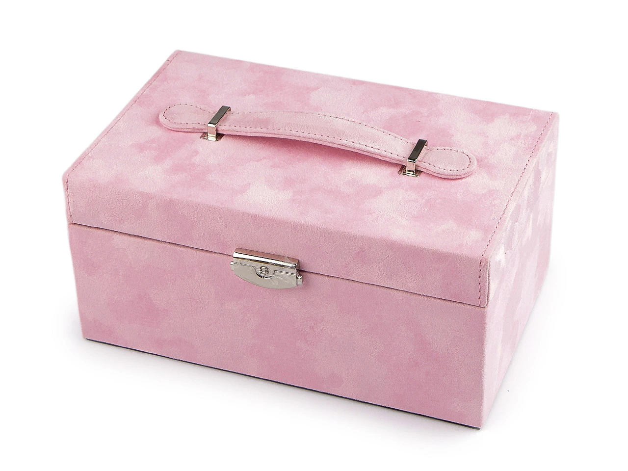Šperkovnice 2 v 1 uzamykatelná růžová semiš