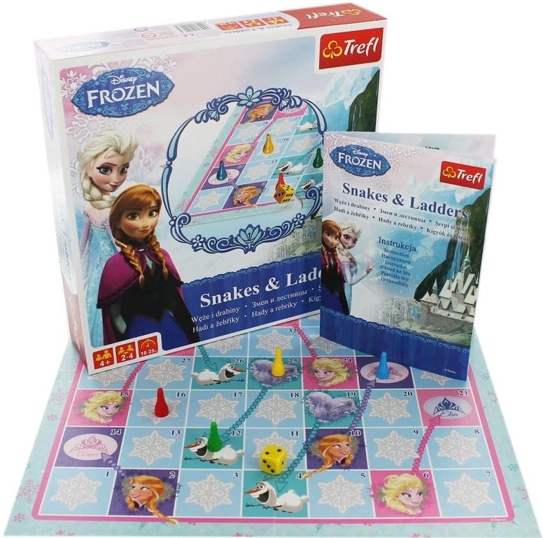 Obsah balení: plán, Elsin zámek, schody, 12 žetonů, 4 figurky, 4 podložky figurek, kostka, návod