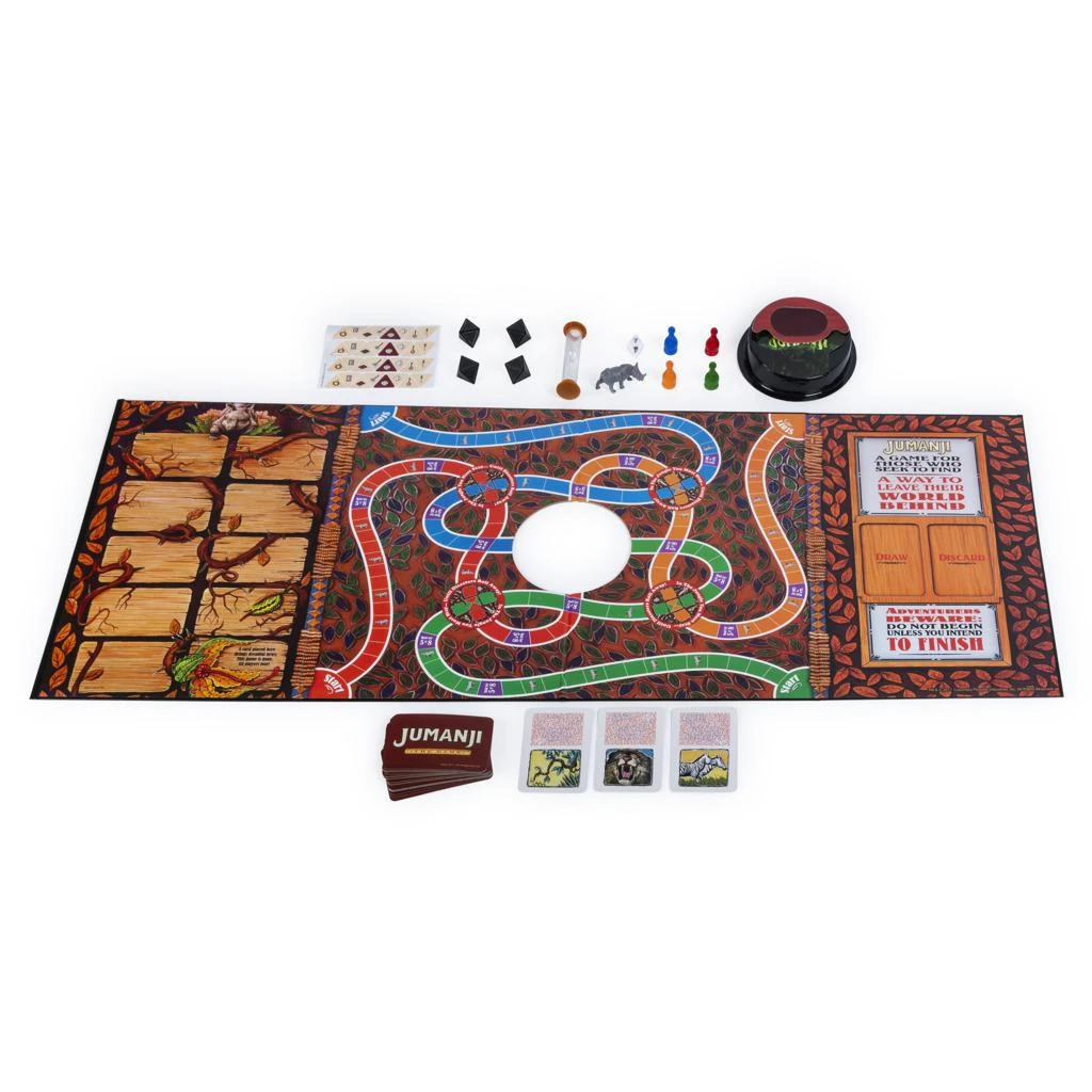 Zažij stejná dobrodružství se společenskou hrou Jumanji, jako ve stejnojmenném známém filmu. Pronásledování lvy, střet s nosorožci a útočící krokodýli jsou jen začátkem nebezpečí v divokém světě Jumanji.