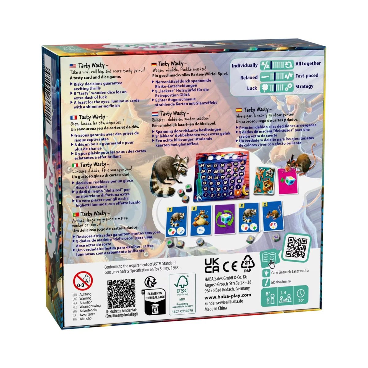Tasty, Wasty je napínavá kostková hra pro všechny gurmány, kteří se nebojí riskovat. Potkaní labužníci Tasty, Wasty, Bob a Steve objevili v odpadkovém koši hvězdné restaurace hotové delikatesy! Vaším úkolem je svolat tuto partu hodovníků a pomocí štěstí i rozvahy jim naservírovat jejich vysněné menu.