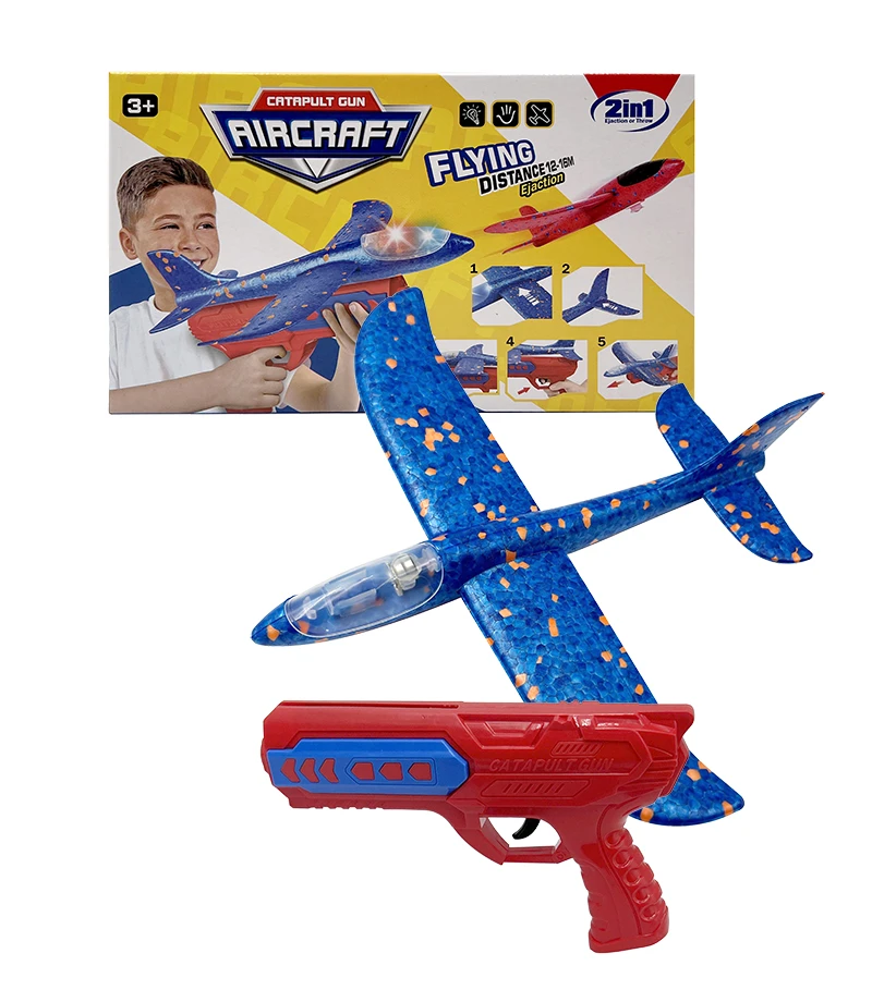 Součástí balení je také vystřelovací pistole, do které se letadélko jednoduše vloží. Po natažení a stisknutí spouště se letadélko vznese vysoko do vzduchu, což zvládnou i menší děti.