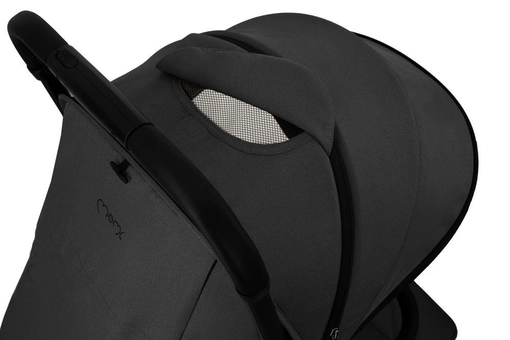 Stříška s okénkem umožňuje pozorovat dítě; po sklopení sedadla lze otevřít druhé okénko se vzdušnou síťovinou, které zajišťuje lepší větrání v teplých dnech.