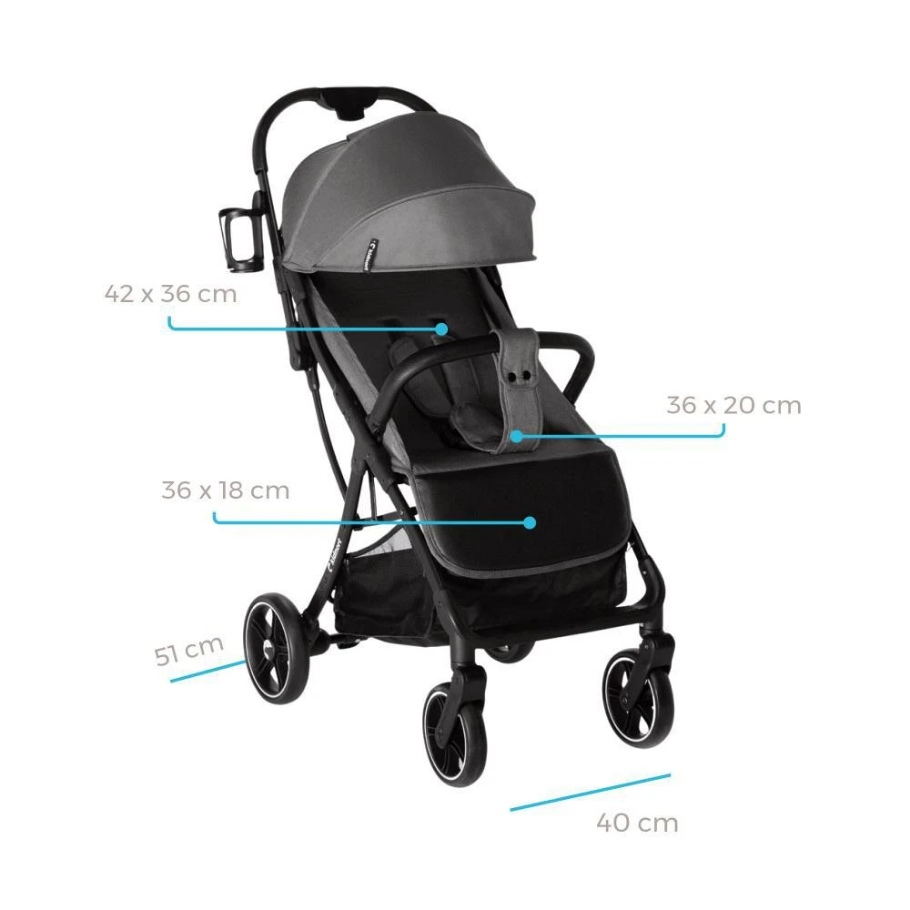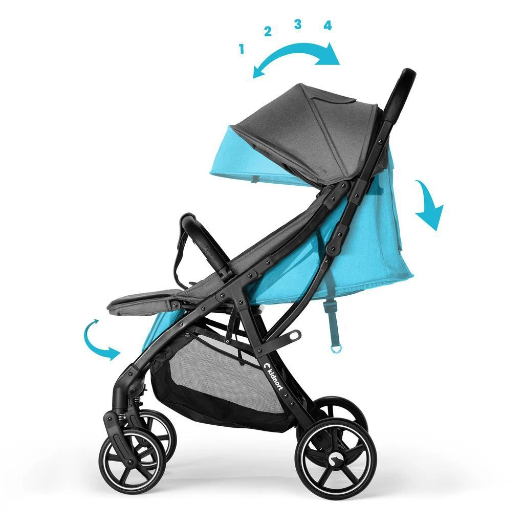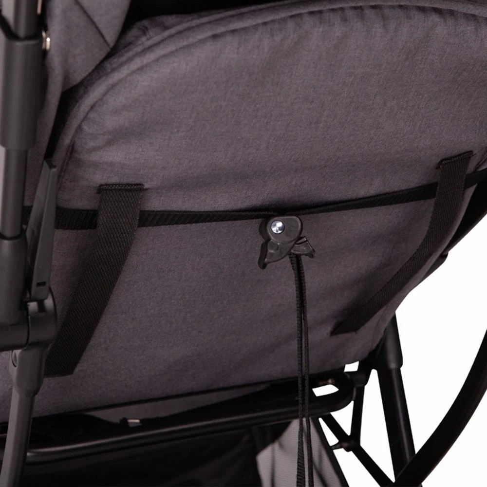 Úhel zádové opěrky kočárku lze nastavit v širokém rozsahu. Opěradlo lze rychle nastavit jedním pohybem pomocí popruhu. To poskytuje dítěti vhodnou a pohodlnou polohu. Kočárek má podnožku z ekokůže, která se snadno čistí. Tento prvek je také nastavitelný.