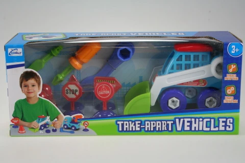 Šroubovací bagr o velikosti cca 18 cm.Součástí balení samostatný šroubovák,šroubovák s rukojetí,plastový klíč na šroubování,6 dopravních značek.Rozměr balení cca 38 cm X 12 cm X 15 cm.Věk 3+