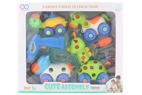 Sada šroubovacích zvířátek. Balení obsahuje 4 zvířátka, vrtačku a šroubovák. Vrtačka je na baterie - napájení na 2 AA baterie (nejsou součástí).