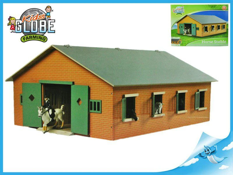 Velká skládací dřevěná stáj o rozměru 72,5x60x37,5cm je vhodným doplňkem pro malé farmáře. Stáj v měřítku 1:24 má vnitřní část rozdělenu na jednotlivé stáje pro koně a otvírací střechu z obou stran pro lepší přístup do vnitřních prostor. Šroubky k montáži jsou součástí balení.