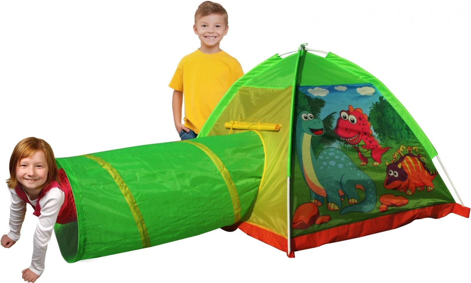 Stan s tunelem o rozměrech cca 170 x 112 x 94 cm s motivem dinosarů. Stan můžete použít doma v pokojíku ale také v létě venku na zahradě. Děti si při hraní a schovávání užijí spoustu zábavy.