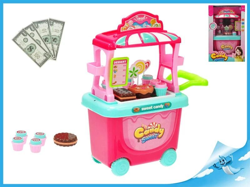 Nádherný plastový stánek s cukrovinkami nesmí chybět v žádném holčičím pokojíčku. Pokud Vaše ratolest ráda vaří, servíruje dobroty, tak tento krásný stánek určitě bude potřebovat.