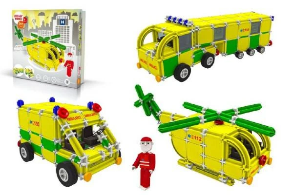 Stavebnice SEVA Rescue 3obsahuje 537 speciálních reflexních dílků, ze kterých si můžete postavit sanitku, vrtulník... Součástí balení je i panáček Seváček.