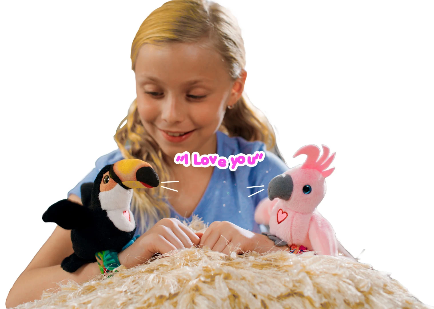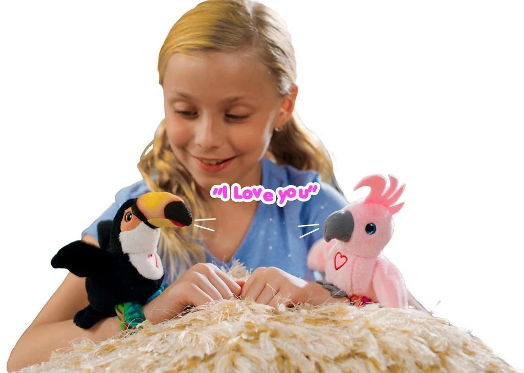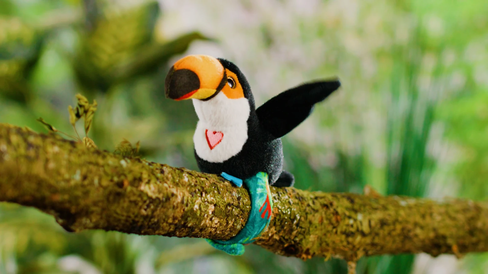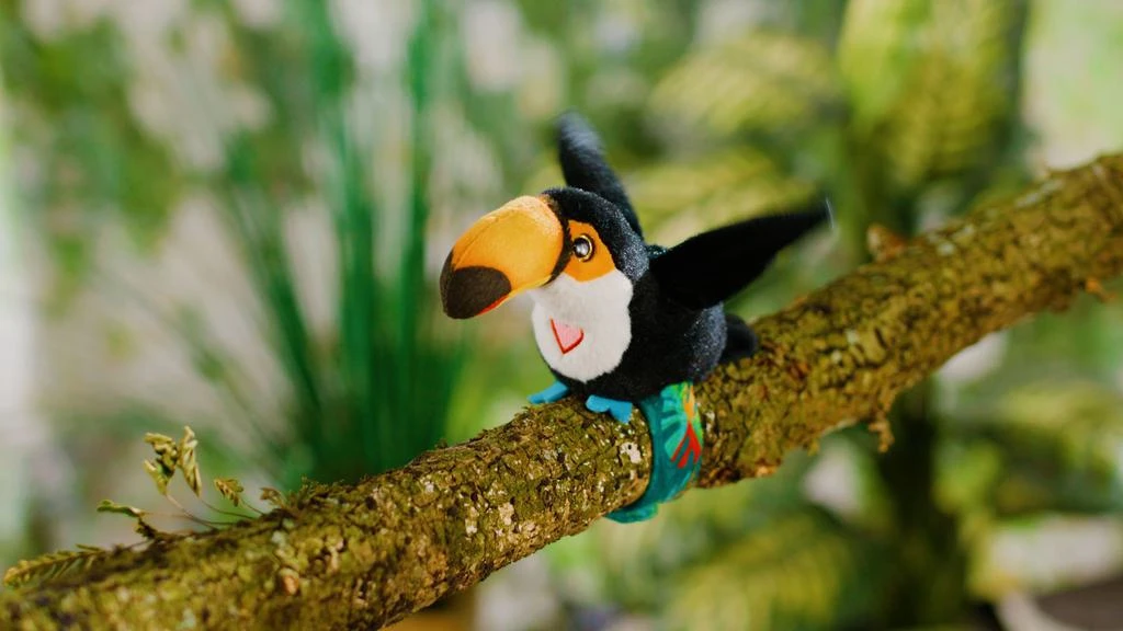 Autentické zvuky: Pohlaďte tukana na zádech a on vám poděkuje autentickým ptačím zvukem, který dodává hračce na realističnosti.