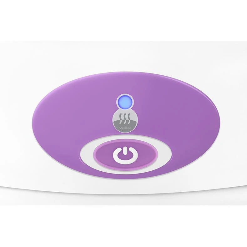 Přístroj zapnete jedním tlačítkem, kterým se rozsvítí světýlko na znamení spuštění. Po dokončení cyklu se přístroj automaticky vypne. Pokud necháte zaklopené víko, sterilizované lahvičky
