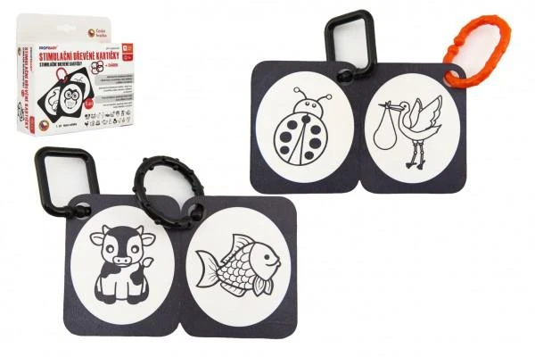 Stimulační dřevěné kartičky 1.díl - Naše zvířátka černobílé 12 m+