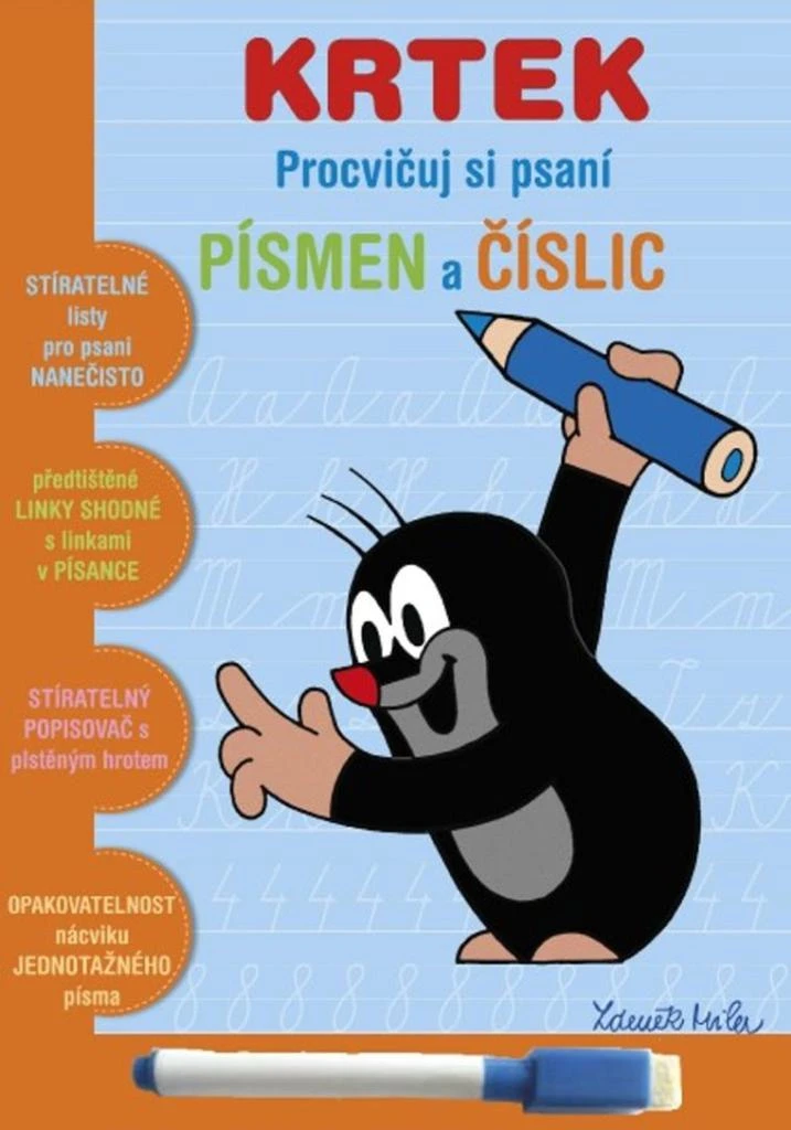 Stíratelný sešit "Procvičuj si písmena a číslice" + stíratelný popisovač - Krtek 2