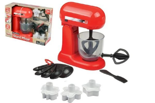 Součástí balení je: mixér, 2 metličky,mísa, 3 formiky,5x odměrka, stěrka.