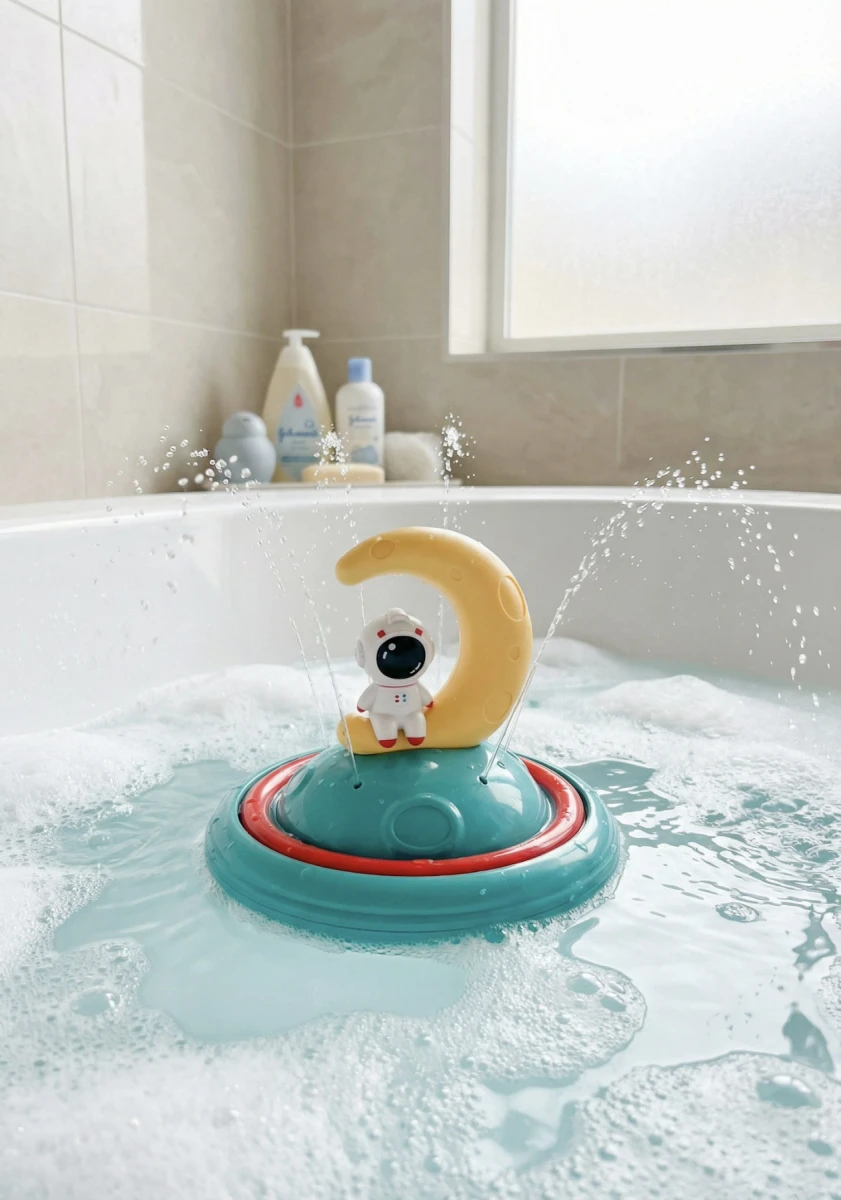 Hračka podporuje smyslové vnímání, představivost a motivuje děti, aby si koupání spojovaly s příjemným zážitkem. Astronaut Měsíc funguje na baterie, které nejsou součástí balení. Hračka bezpečná a vhodná pro děti od 3 let. Jedná se o výborný dárek pro malé fanoušky vesmíru, kteří milují vodní hry a rádi sledují, jak proudy vody stříkají do všech stran.