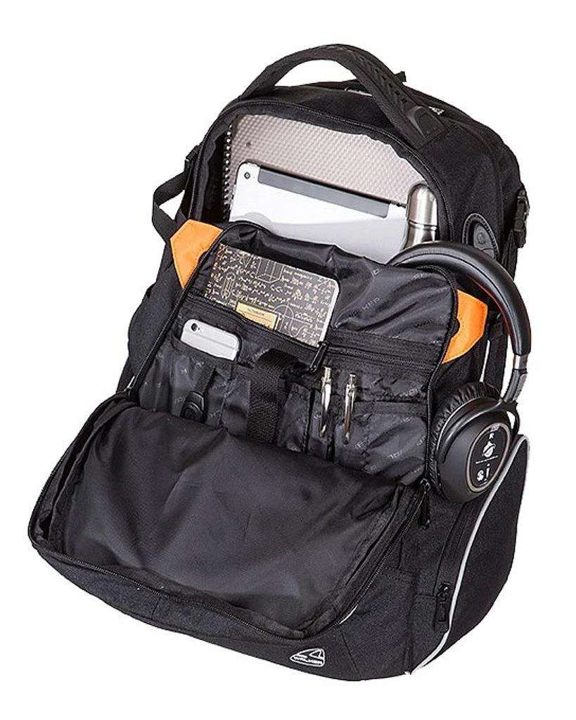- USB kabel, který vyúsťuje v USB port na vnější straně batohu,
