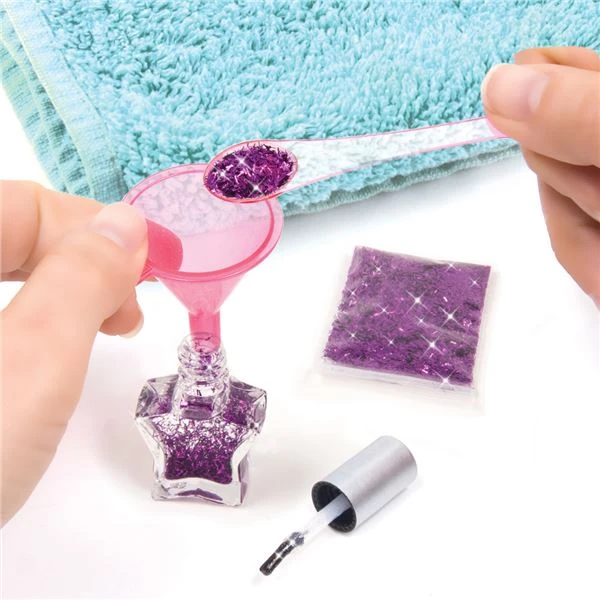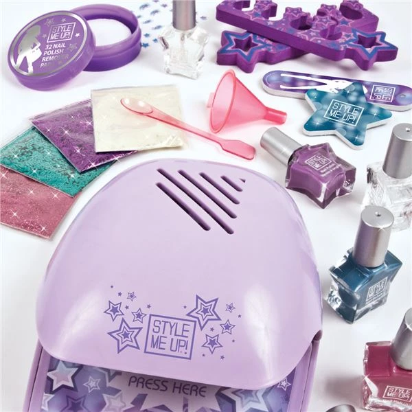 Ozdob své nehty pomocí trendy laků a doplňků. Vytvoř si svůj vlastní design a nehty vysuš pomocí vysoušeče. Obsahuje: Vysoušeč nehtů, 6 laků na nehty, balíček třpytivého pudru, 3 balíčky flitrů, 32 tamponků k odstranění laku na nehty.