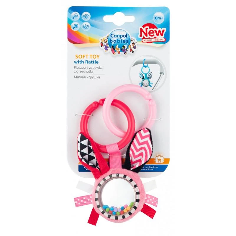 Šustící plyšová hračka s chrastítkem ZIG ZAG Canpol stuha RŮŽOVÝ KRÁLÍK