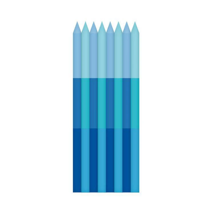 Svíčky narozeninové, pruhy modré, 10 cm, 24 ks
