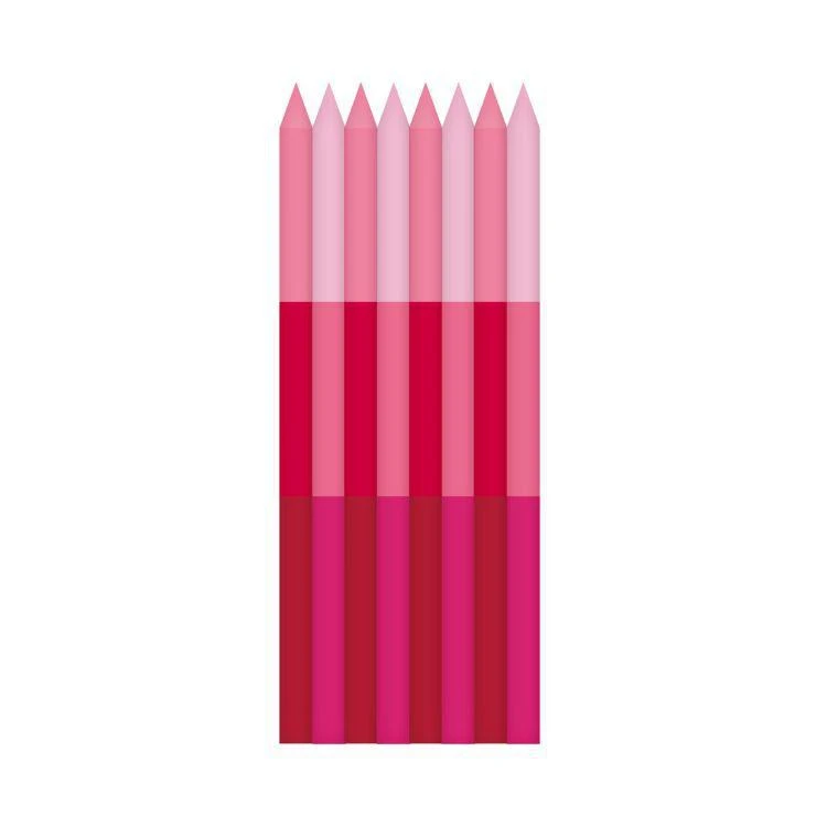Svíčky narozeninové, pruhy růžové, 10 cm, 24 ks