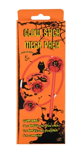 Upozornění: Uchovávejte svítící tyčinku v původním obalu, dokud nebude připravena k použití. Vnitřní tyčinka obsahuje sklo. Neprořezávejte ani nepropichujte povrch svítící tyčinky. Chemické látky ve výrobku jsou nehořlavé, ale mohou trvale znečistit nábytek, oblečení a koberce. Po použití svítící tyčinku zlikvidujte v souladu se zákonem o odpadech. Nenechávejte svítící tyčinky na přímém slunci ani je nevystavujte vysokým teplotám. Při zasažení kůže nebo očí důkladně vypláchněte vodou. Složky nezpůsobí poranění očí, ale mohou způsobit dočasné potíže.