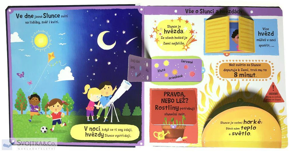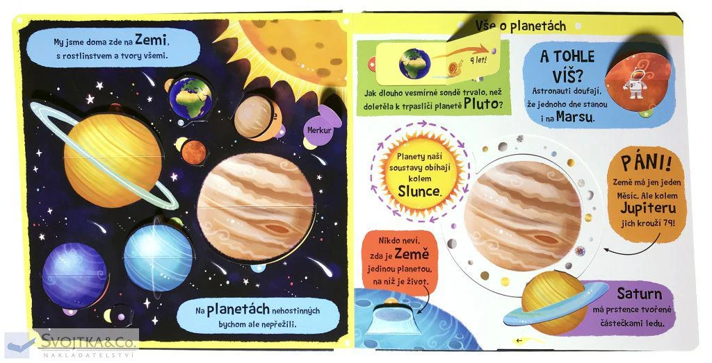 Tato knížka je napěchována zajímavostmi a vtipnými fakty. Bohatě ilustrované stránky ti představí celý vesmír. Díky odklápěcím okénkům, otočnému kolečku, velké rozkládací stránce a veršům se při čtení budeš skvěle bavit.