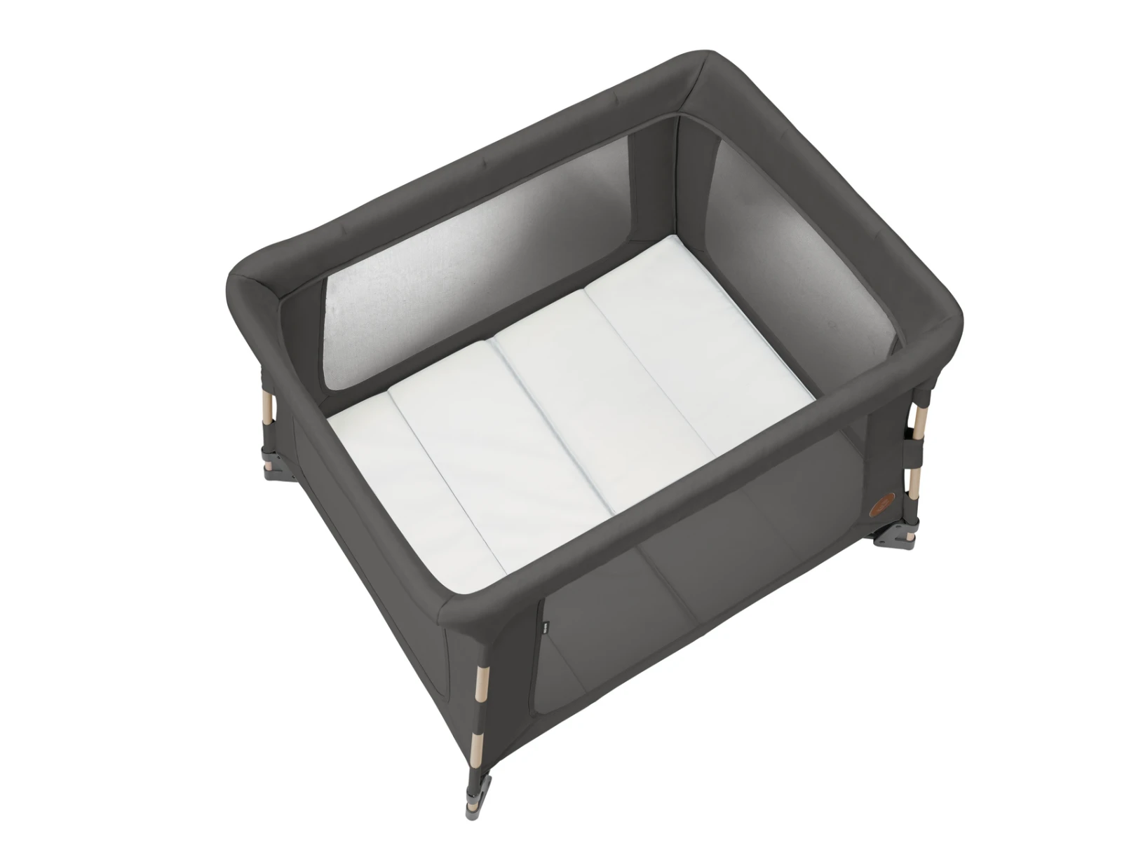 Postýlka je vybavena skládací dvoudílnou pěnovou matrací. Pro miminko od narození je určena poloviční velikost matrace pro vytvoření útulného prostředí s vyvýšeným dnem. Pro dítě od cca 6 měsíců spojíte oba díly matrace zipem a umístíte ji na dno postýlky. Pro obě velikosti matrace je možné dokoupit samostatně prodávaná natahovací prostěradla.