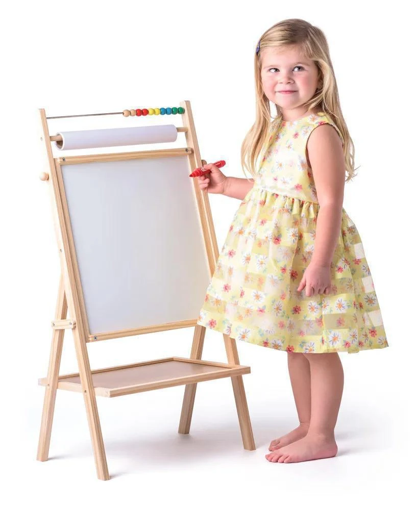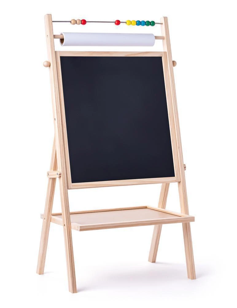 Magnetická oboustranná školní tabule v praktickém provedení s tyčkou pro roli papíru. Z jedné strany je tabule černá pro malování křídou a z druhé je bílá pro malování suchým fixem. Ve vrchní části tabule je umístěno jednoduché počítadlo.