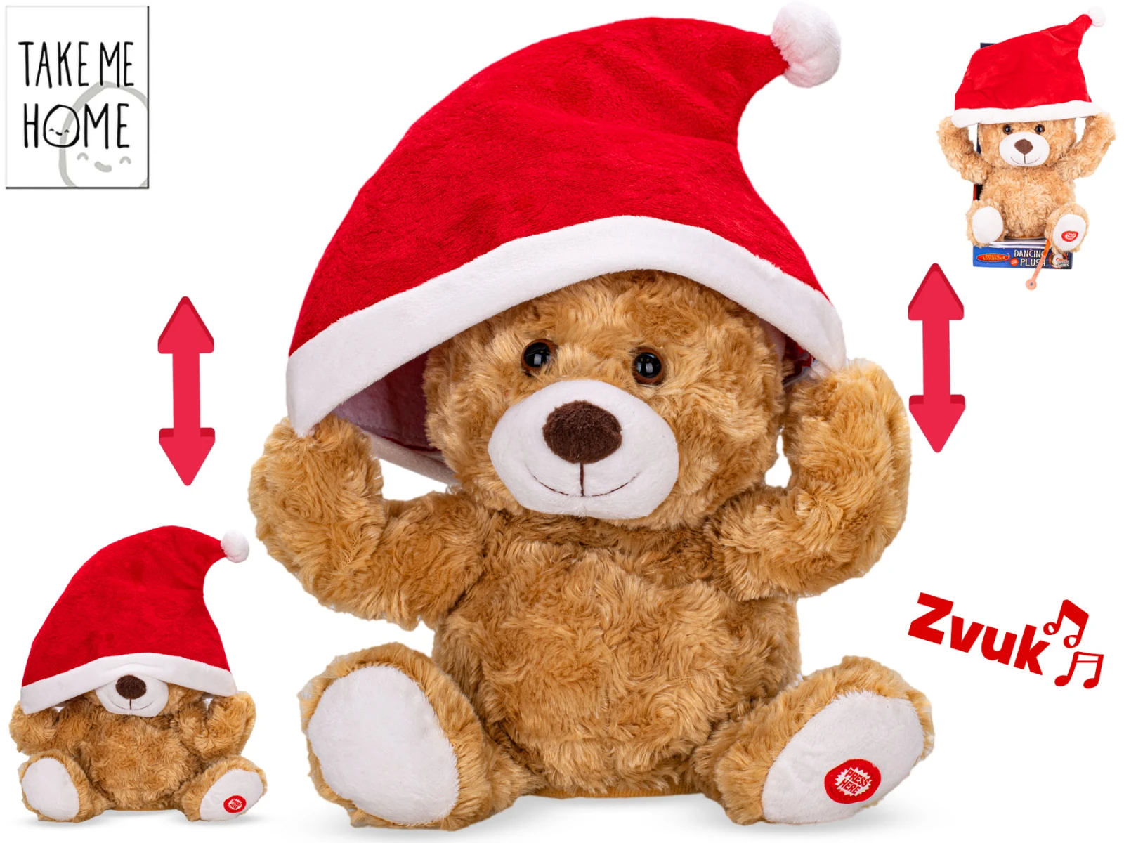 Medvěd plyšový nasazující si santovskou čepici zvuk Take Me Home