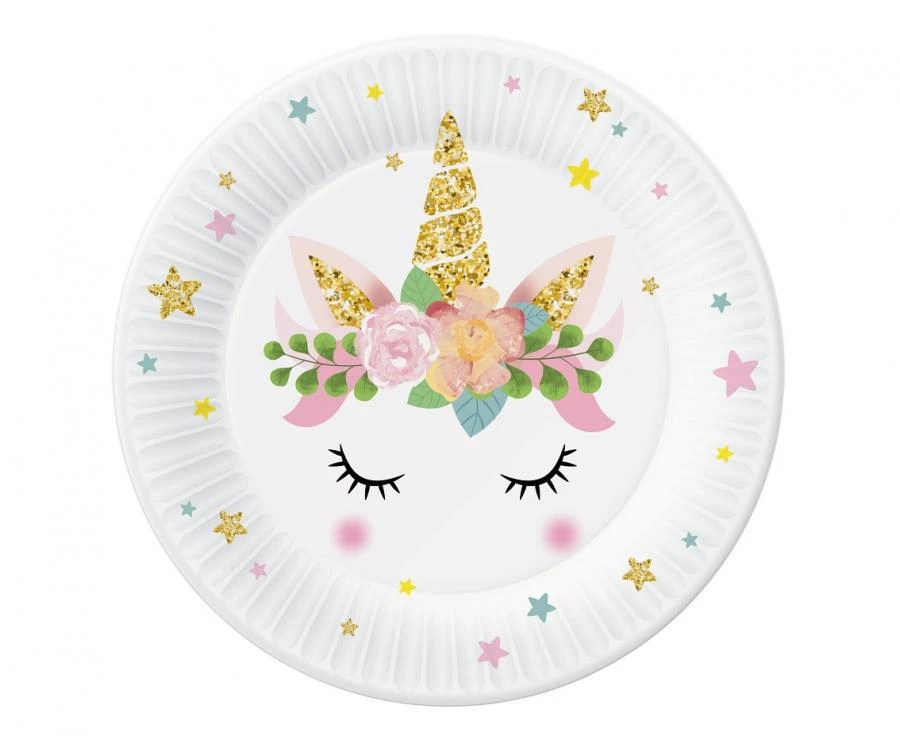 Talířky papírové - Jednorožec 18 cm, 6 ks