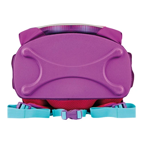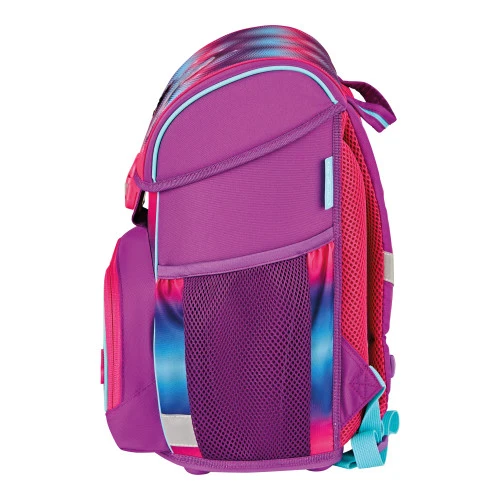 Ergonomicky tvarované a prodyšné polstrování zad, nastavitelné ramenní popruhy, výškově nastavitelný hrudní pás, hlavní kapsa s prostorem pro knihy, boční kapsy s elastickými pásky, přední kapsa na zip, stabilní spodní deska s nožičkami, pohodlná rukojeť, zavírání Click lock s odrazkou, reflexní materiály Oralite.