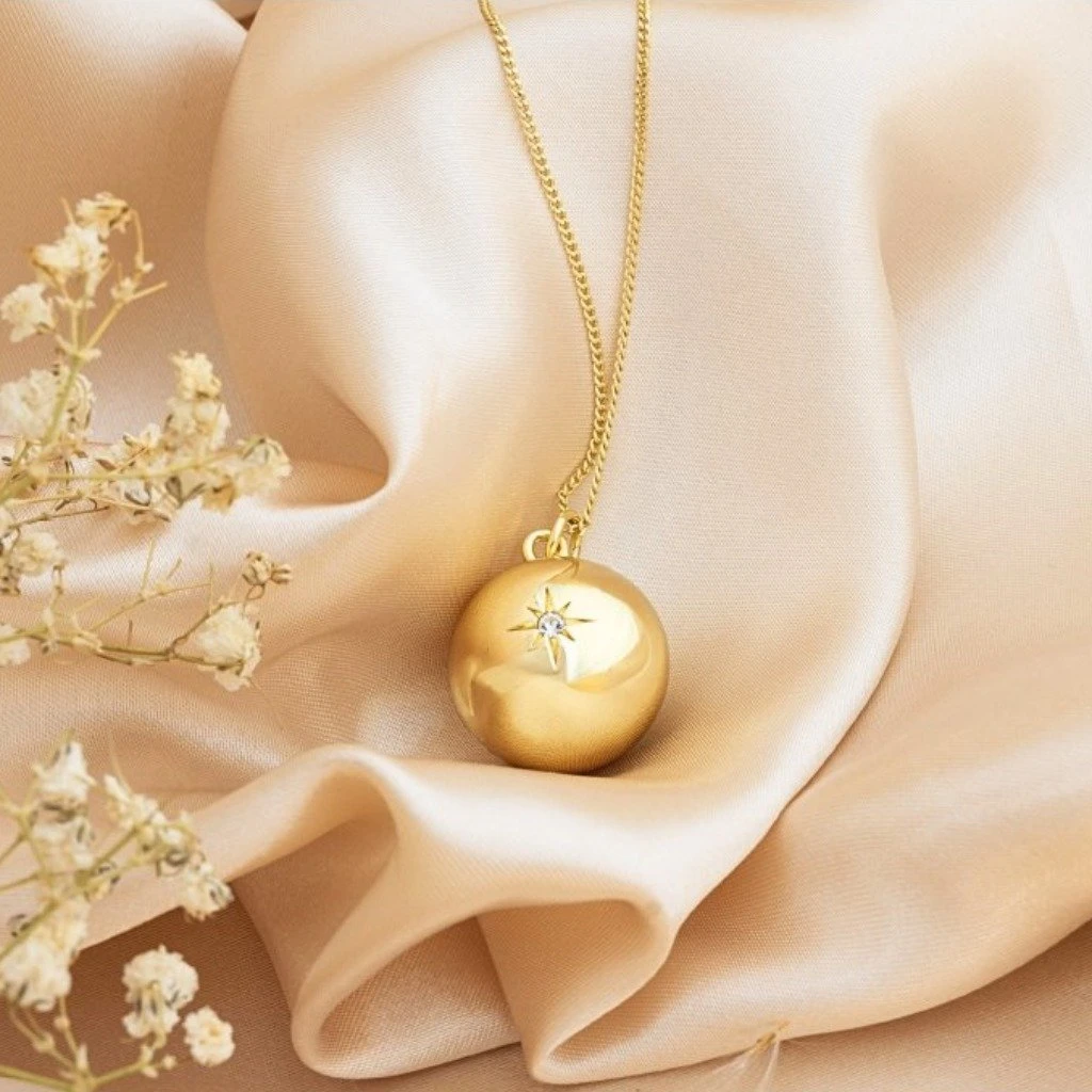 Rolnička Stella Lucia v odstínu teplého zlata symbolizuje světlo, život a radost. Každým pohybem se rozezní její tichý, jasný tón, který přináší pocit klidu, vděčnosti a hlubokého propojení mezi vámi a vaším děťátkem.