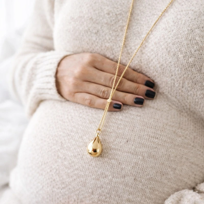 - nosí se na delším řetízku/šňůrce tak, aby se přívěsek pohyboval na bříšku těhotné ženy